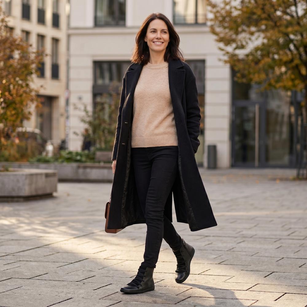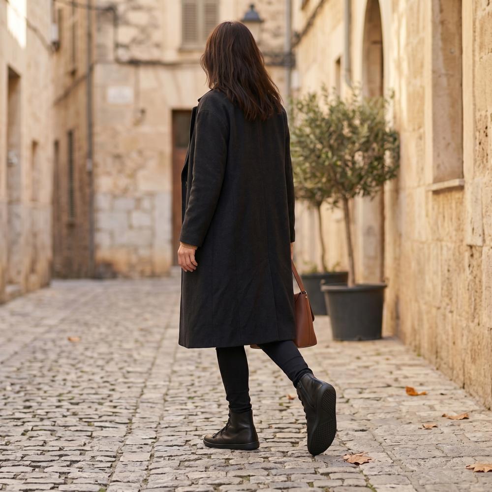 Σόλα από καουτσούκ με μηδενικό τακούνι, ανακουφίζοντας έτσι την καταπόνηση της σπονδυλικής στήλης και προστατεύοντας τις αρθρώσεις, υποστηρίζει τη φυσική στάση του σώματος