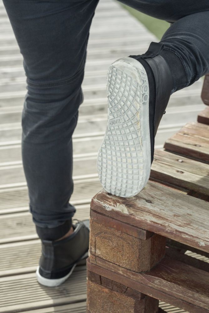 • Σόλα από καουτσούκ με μηδενικό τακούνι, ανακουφίζοντας έτσι την καταπόνηση της σπονδυλικής στήλης και προστατεύοντας τις αρθρώσεις, υποστηρίζει τη φυσική στάση του σώματος