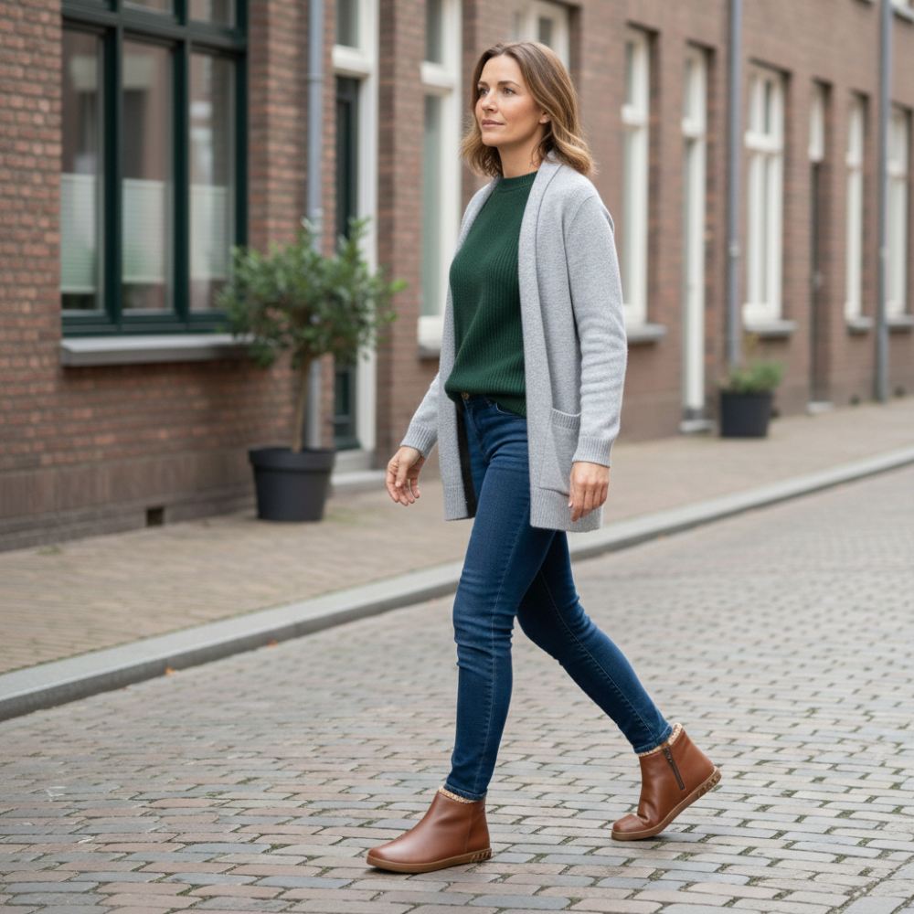 La suela de goma con tacón cero, aliviando así la columna vertebral y protegiendo las articulaciones, apoya la postura natural