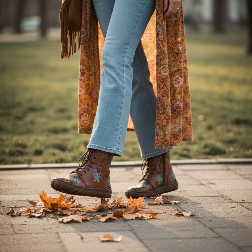 Estas botas en un tono marrón cálido, decoradas con un diseño único de potencia de flores, no solo son un punto culminante óptico, sino también un símbolo de libertad y naturalidad. El cuero Nappa premium garantiza un aspecto de alta calidad, mientras que la cremallera en la base y el cordón permiten un ajuste individual y un ajuste fácil.