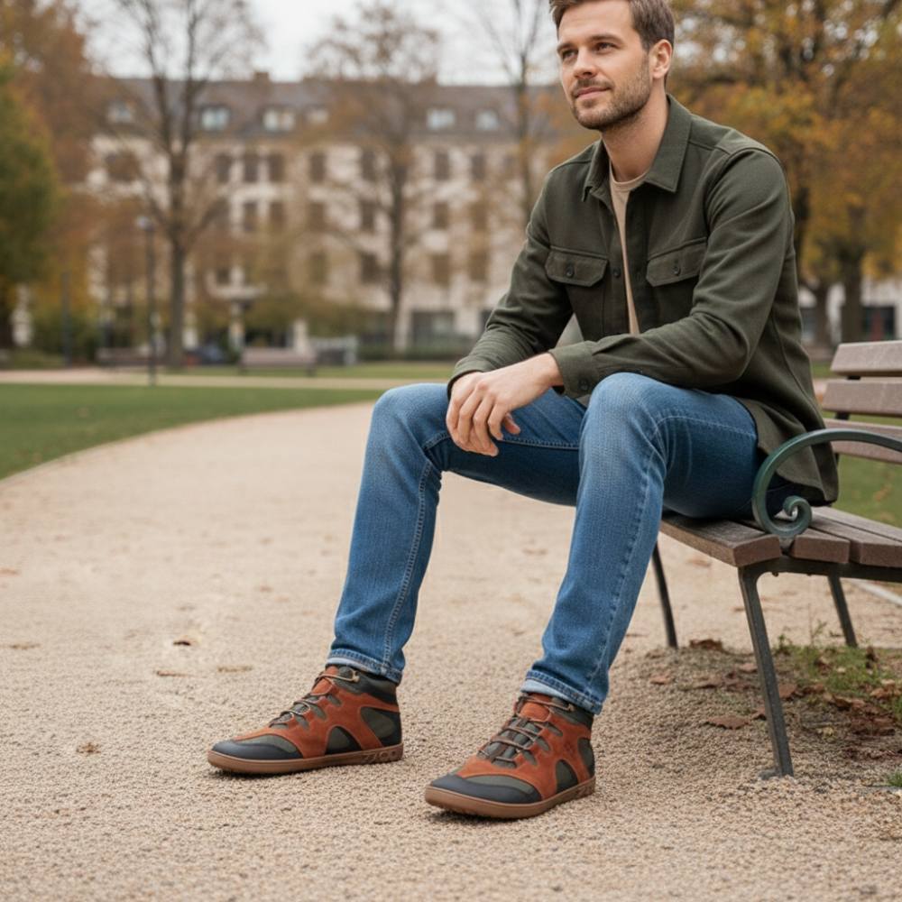 La suela de goma con tacón cero, aliviando así la columna vertebral y protegiendo las articulaciones, apoya la postura natural