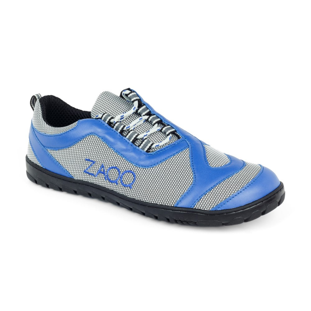 La parte superior está hecha de tejido de malla particularmente transpirable, que se juega con tiras de cuero azul. Quiq se sienta en los pies como una segunda piel y todavía es robusto y absolutamente duradero. El zapato descalzo está con nuestro especial ZAQQ Suela al aire libre equipada que es súper flexible, pero al mismo tiempo le ofrece un agarre óptimo.