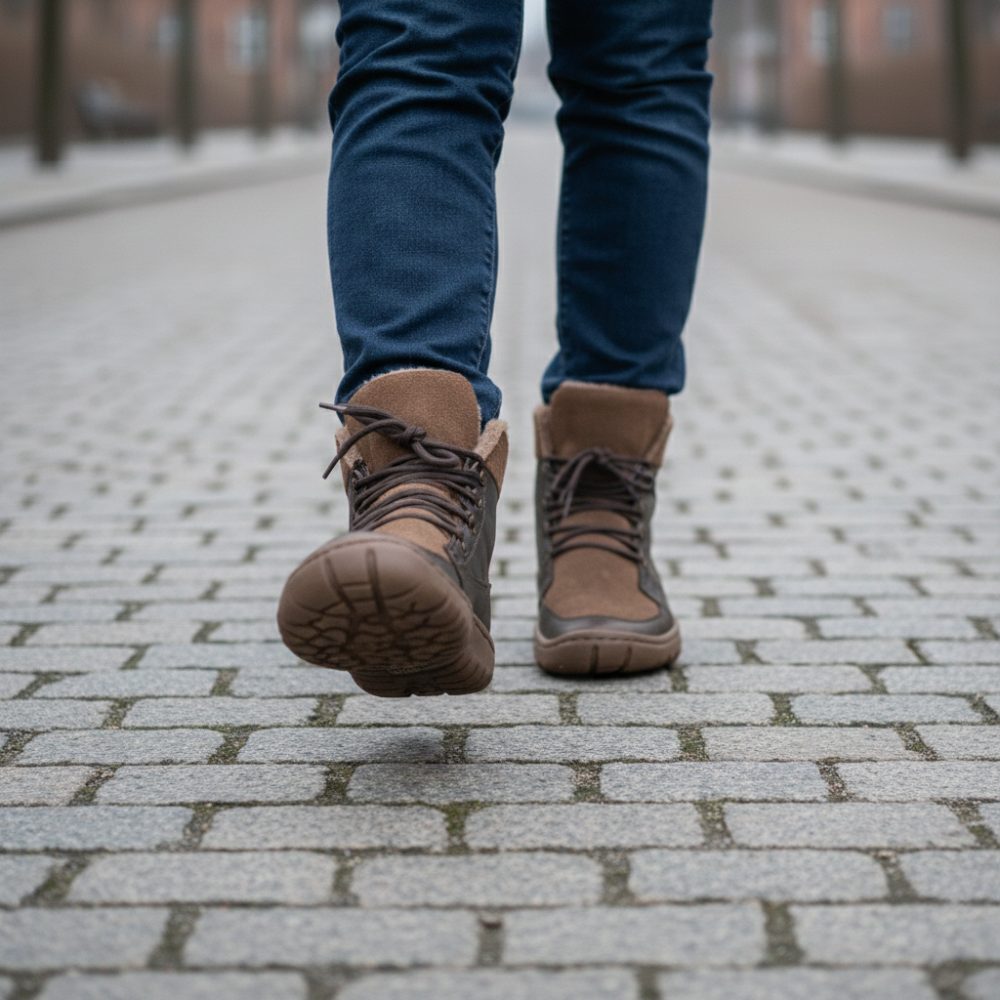 The Alpiq Winter Bronze barefoot shoes are a must-have for the fashion-conscious woman who does not want to do without the feeling of barefoot even in the colder months. These half -high lace -up boots combine casual style with functionality and are made of premium velor leather in brown and nappa leather in shiny bronze. This material combination gives the shoes a unique look that looks both natural and noble.