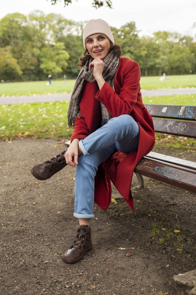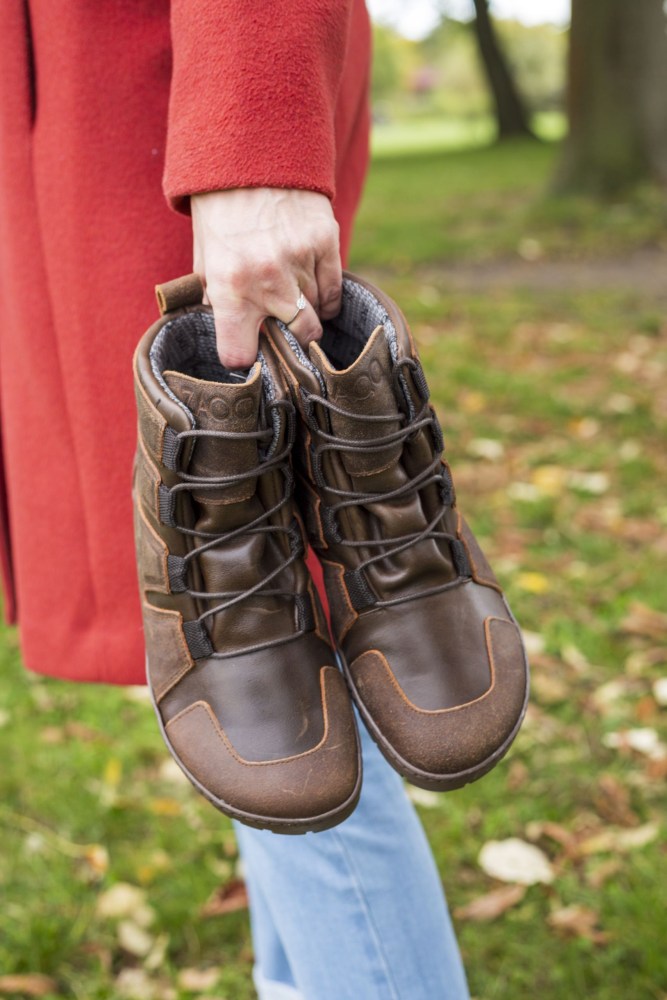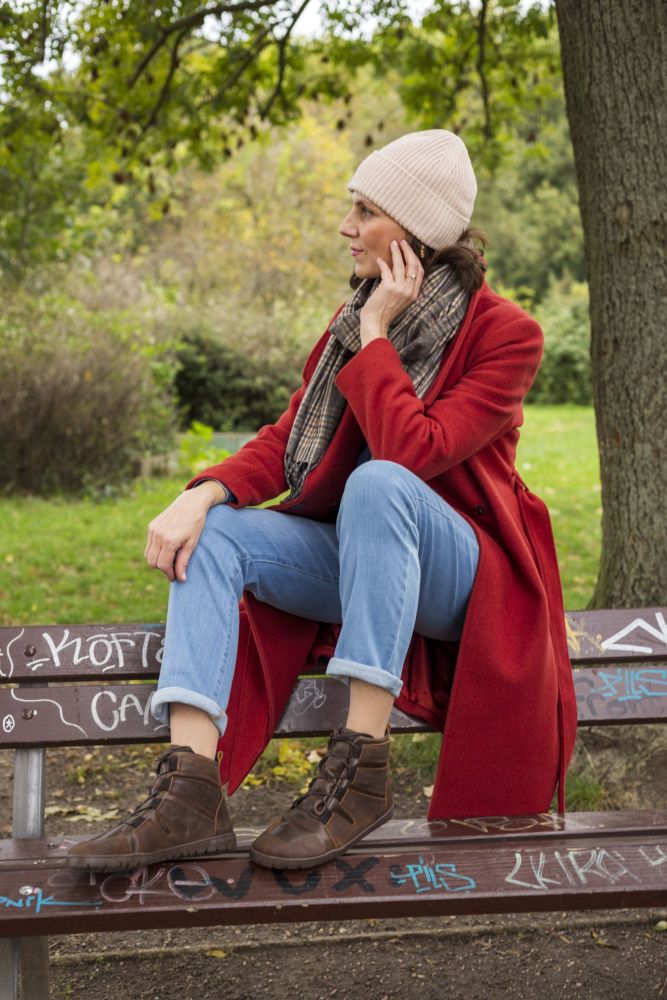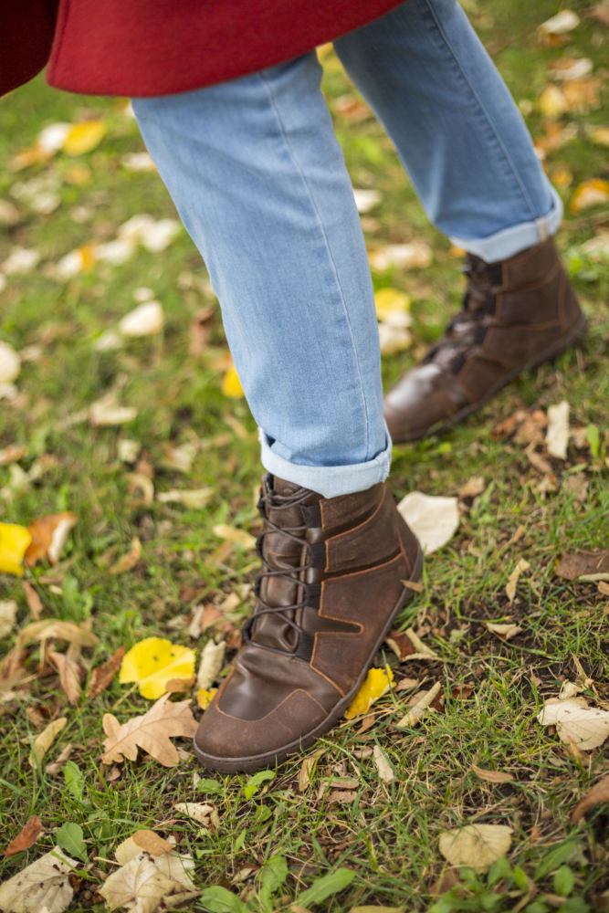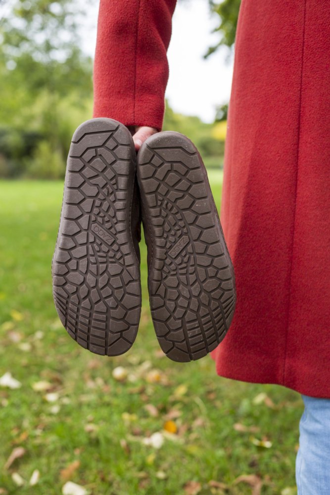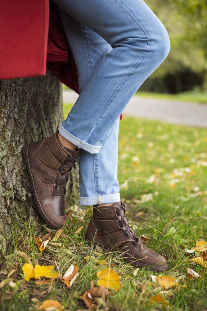 We designed this barefoot shoe in such a way that it does not look like a typical outdoor boat from the outside. So you can wear it very flexibly. No problem with hiking trousers, jeans or even the fancier chinese pose with Daqota.