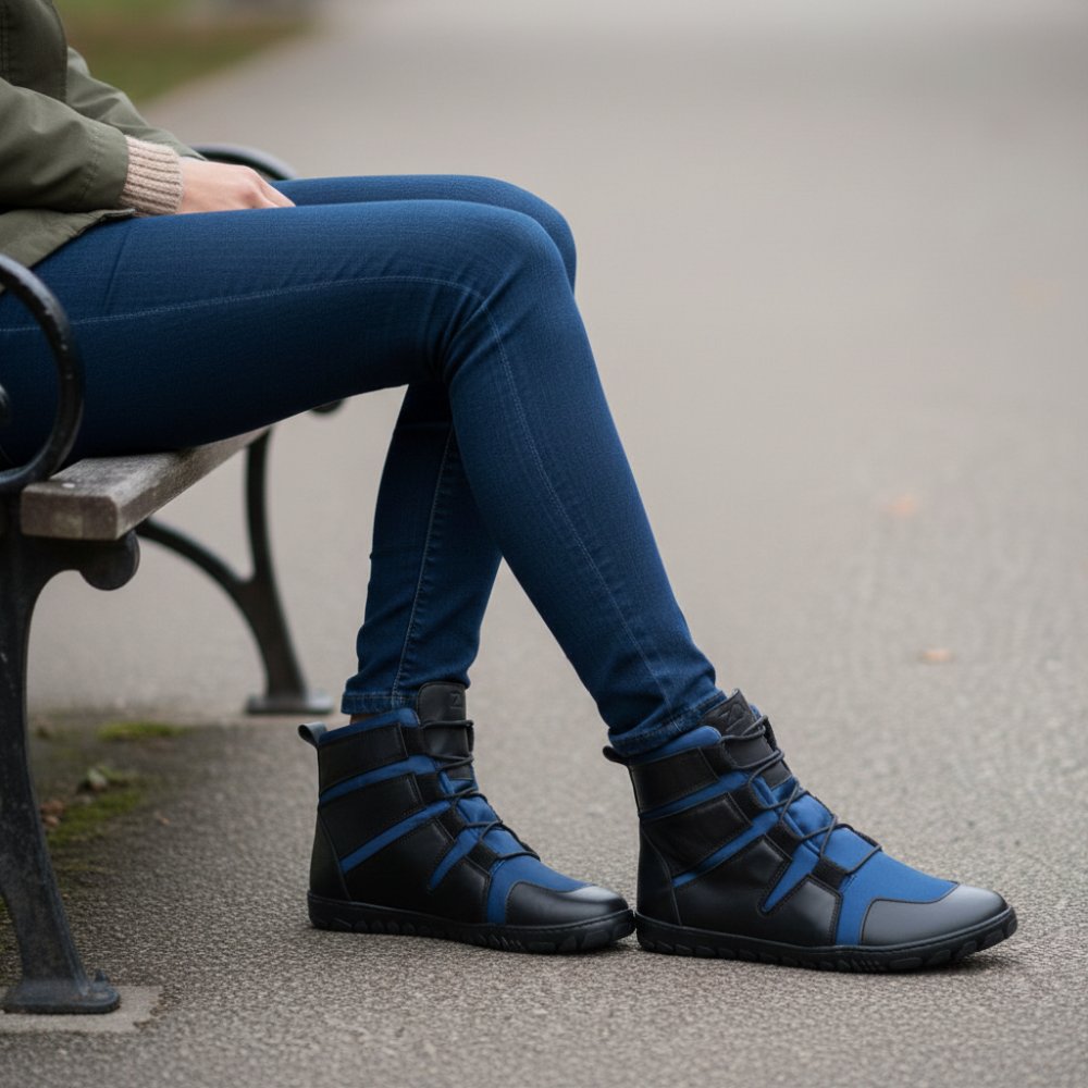 Outdoor rubber sole with zero heel, thus relieving the spine and protecting the joints, supports the natural posture