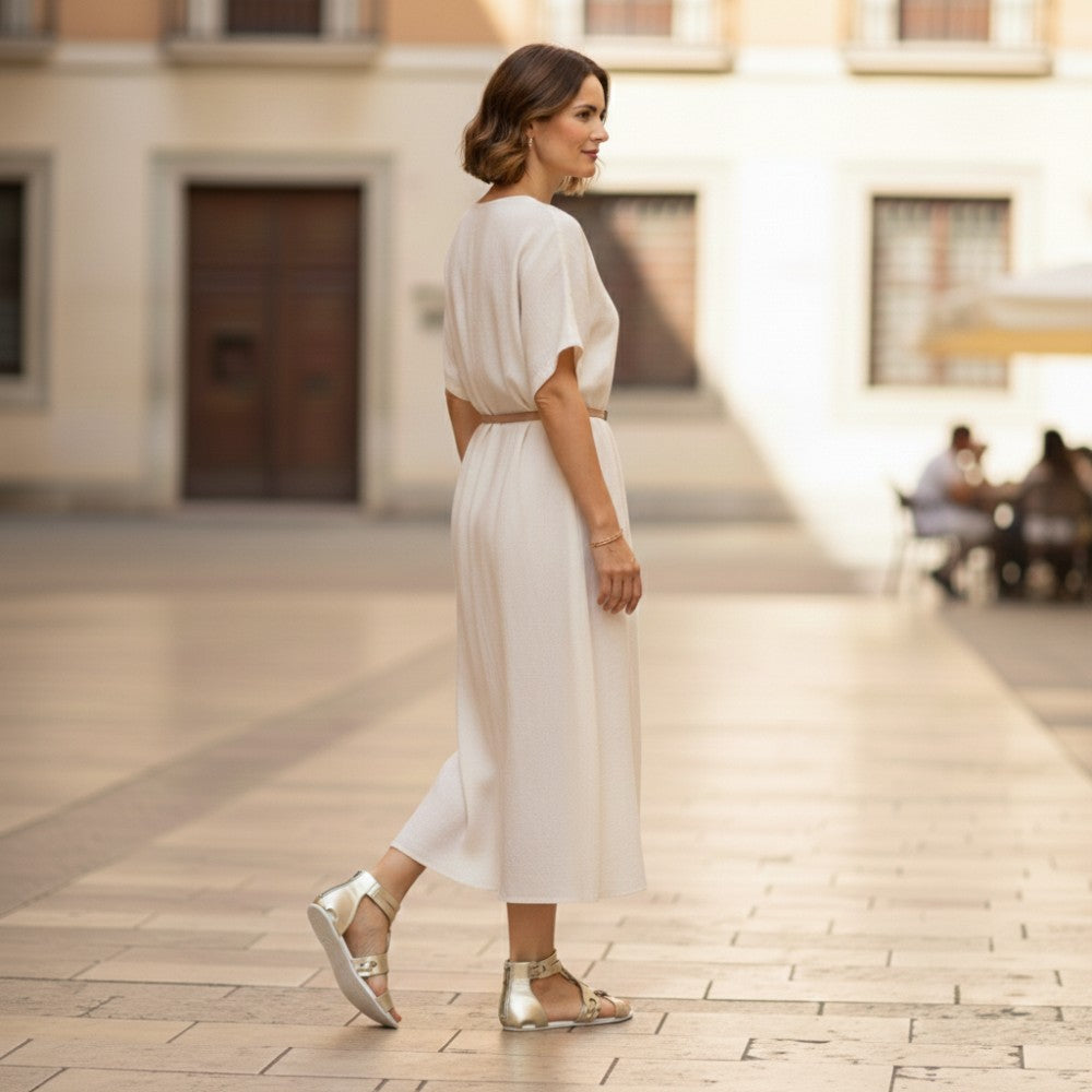 Do you like feminine? Then Maroq Gold is exactly your barefoot sandals, which with its extravagant cut and the shimmering gold tone suits you perfectly.