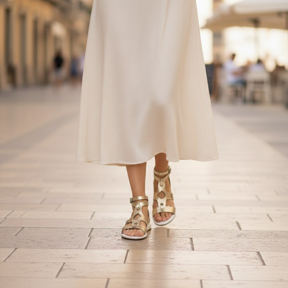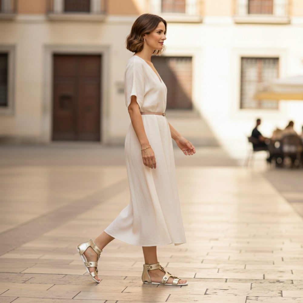 In maroq gold you will feel absolutely free and still well protected. With the extravagant style you make every way to your catwalk. This barefoot sandals gives you that certain extra for every outfit and flatters your figure.