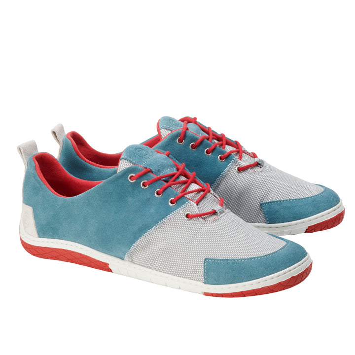 The bright blue, paired with red laces that not only serve as an eye-catcher, but also enable a safe lacing, and the light gray inserts, make this barefoot sneaker a real eye-catcher!