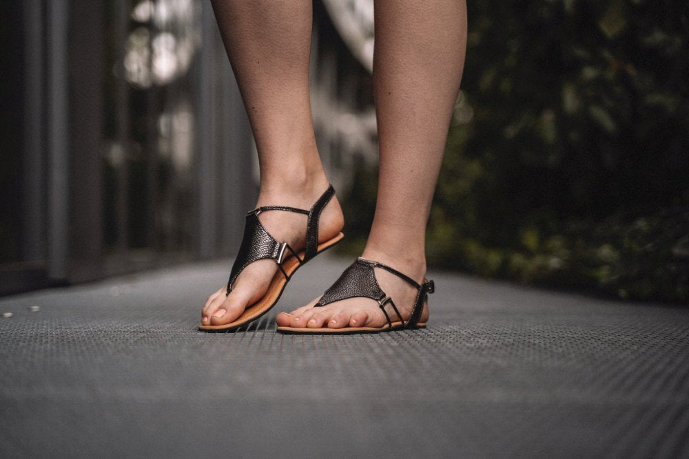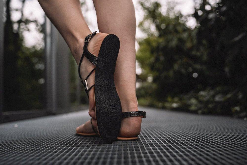 You open the barefoot sandals over the buckle on the rear strap and you can adapt it perfectly to your individual needs when locked. So you always have the optimal hold on your foot. The incredibly thin and flexible rubber sole ensures well -being with every step.