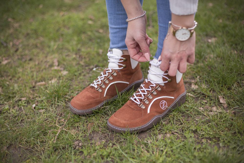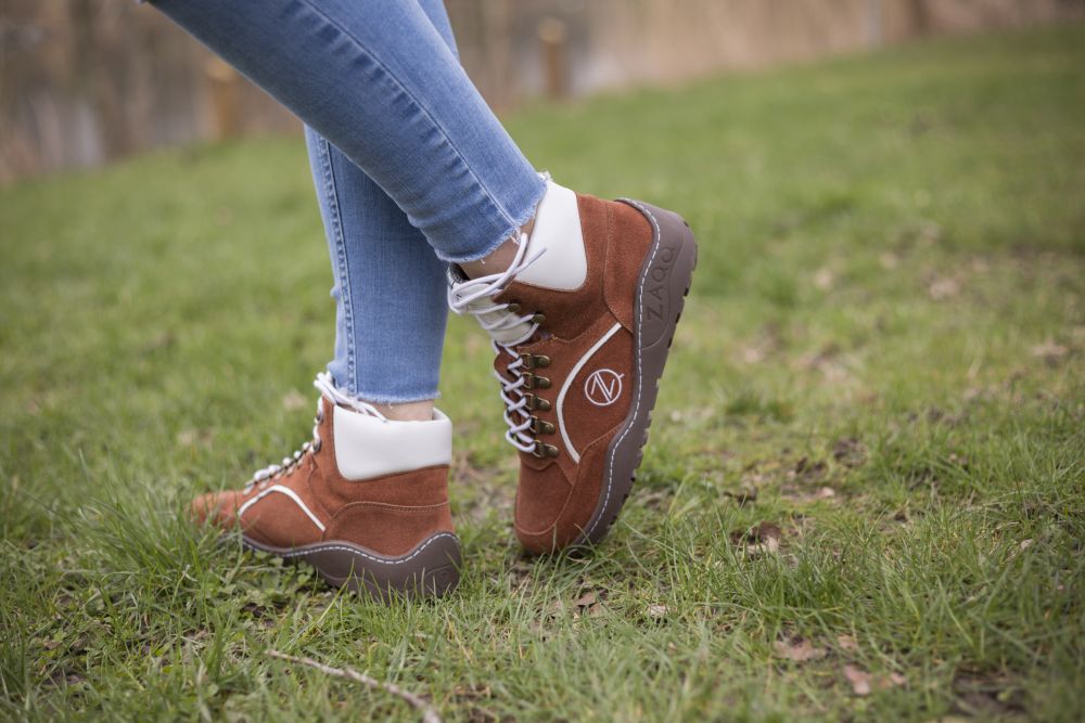 As the upper material, we use high -quality suede in a warm cognac -colored tone and give the barefoot shoe with the white nappa leather inserts and laces an ultra -modern look. Our cuddly will spoil you from the inside ZAQQ Membrane with the highest comfort. With its high breathability, it ensures a pleasant foot climate and is also 100% waterproof.