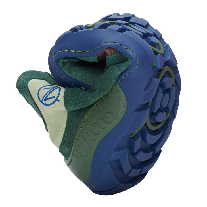 For this barefoot shoe we use robust suede in a beautiful dark green tone combined with perforated nappa leather in dark brown, which ensures the best breathing activity. From the inside the breathable and absolutely waterproof ZAQQ Membrane on your feet.